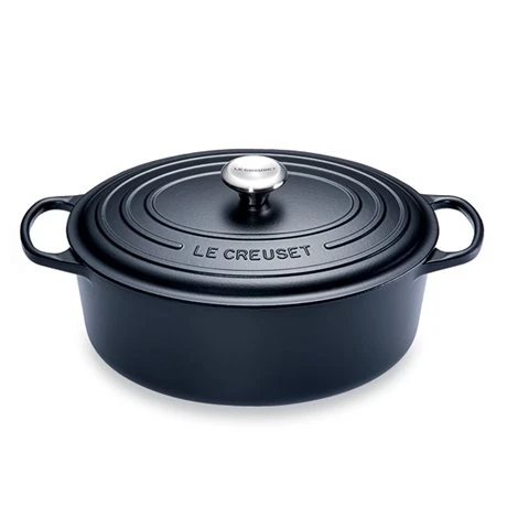 Cette Cocotte fonte ovale 31 cm noir Le Creuset est conçue en fonte émaillée pour une cuisson traditionnelle. Idéale pour cuisiner pour de nombreux convives, elle permet aussi de faire mijoter les viandes.