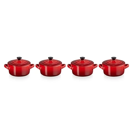 Iconique, ce set 4 mini-cocottes céramique 10 cm Cerise complète à merveille une collection de cocottes de différentes tailles signée Le Creuset. Fabriqués à partir de matériaux haut de gamme, ces ustensiles s’utilisent au quotidien pendant des années. Ce set est garanti 10 ans.