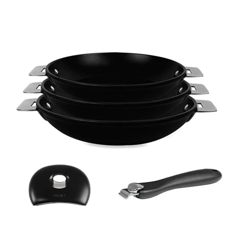 Ce lot est complété par une anse et une poignée en bakélite résistant à la chaleur avec mécanisme en inox solide. Fabriqués en France, l’anse et la poignée s’adaptent à tous les ustensiles de la marque Cristel. A noter : la poignée et l’anse ne passent pas au four.