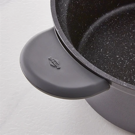 En fonte d’aluminium avec un revêtement unique anti-adhérent garanti sans PFOA, les matériaux nobles durs comme la pierre résistent à un usage intensif et aussi aux éraflures.