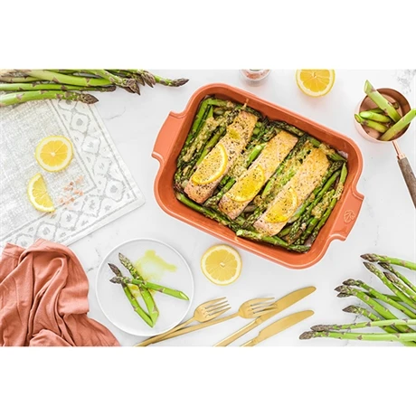 Fabriqué en céramique culinaire émaillée, le plat rectangulaire céramique terracotta 32 cm Peugeot est idéal pour préparer une cuisine gourmande, savoureuse et familiale.