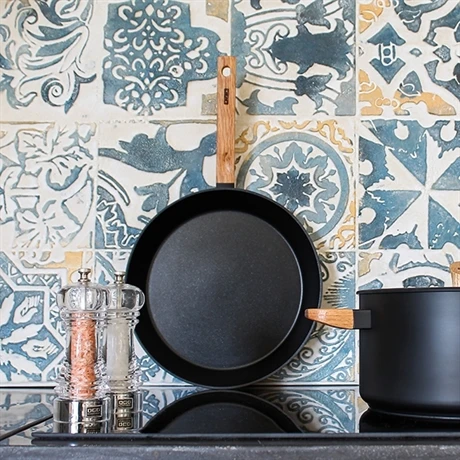 Dotée d’un manche en chêne massif aux finitions brutes et droites, afin de protéger les mains de la chaleur et des éventuelles projections, cette poêle Ector induction aluminium revêtu 20 cm OGO fait partie d’une gamme d’ustensiles robustes et esthétiques.
